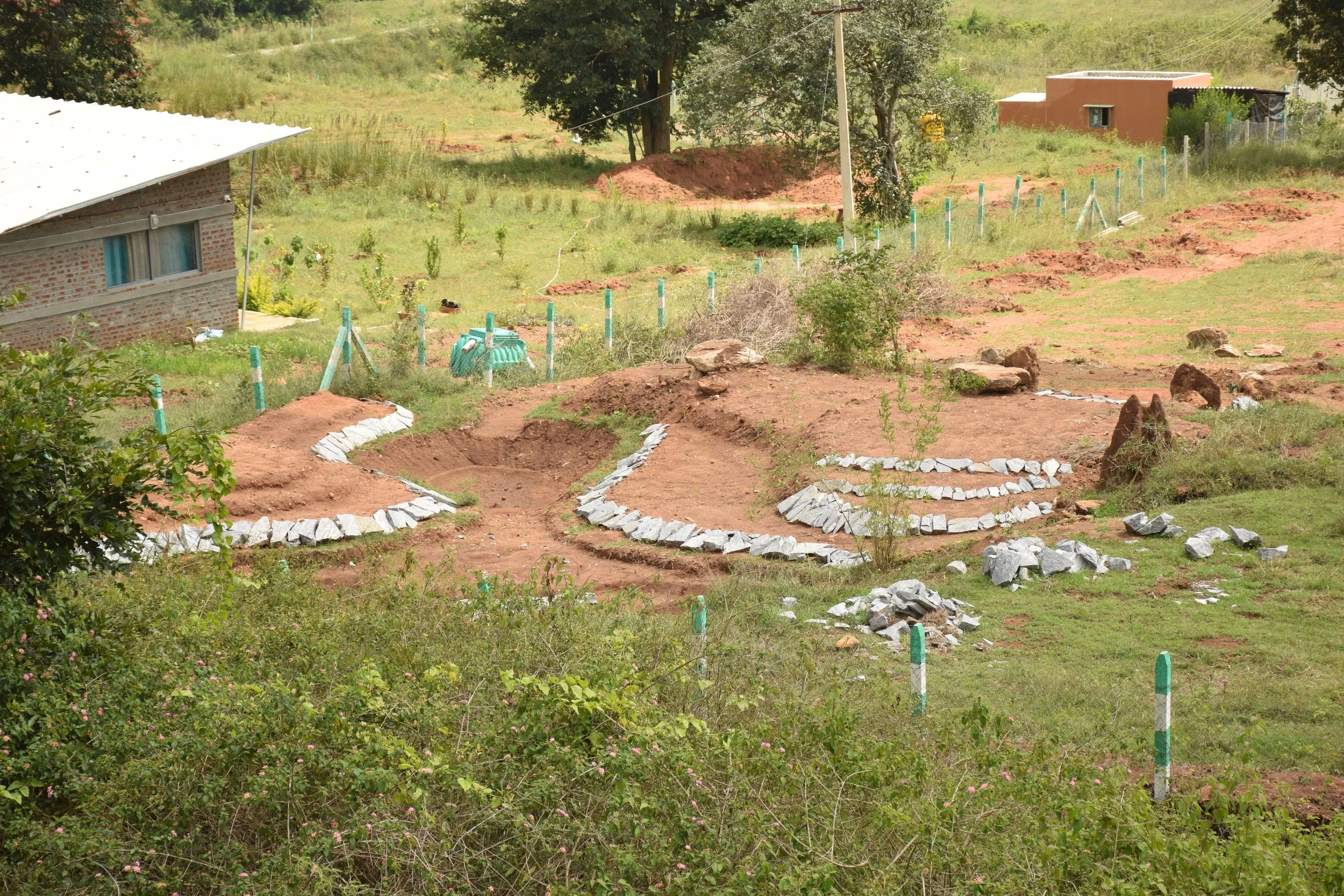 Planting around rocks and bunds